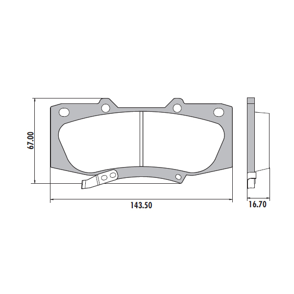 Posición: Delantero Largo: 143.5mm Alto: 67mm Espesor: 16.7mm Sensor: No Sistema: Advics Descripción: