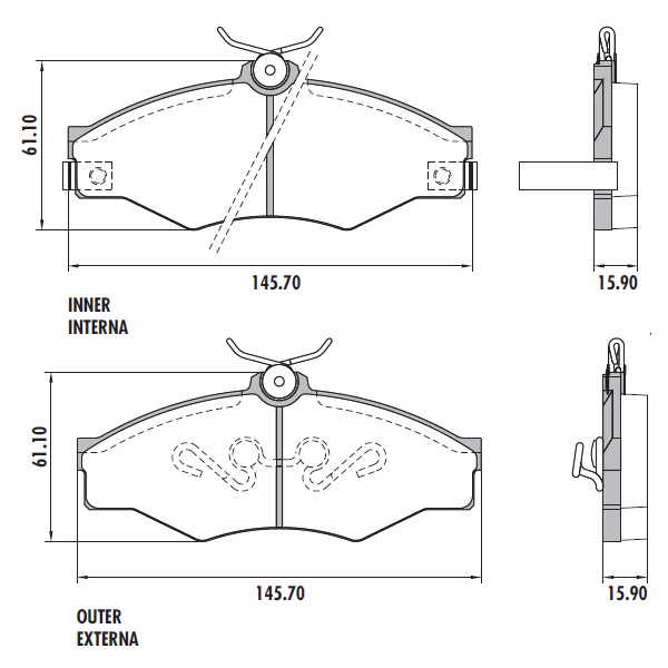 Posición: Delantero Largo: 145.7mm Alto: 61.1mm Espesor: 15.9mm Sensor: No Sistema: Varga Descripción: