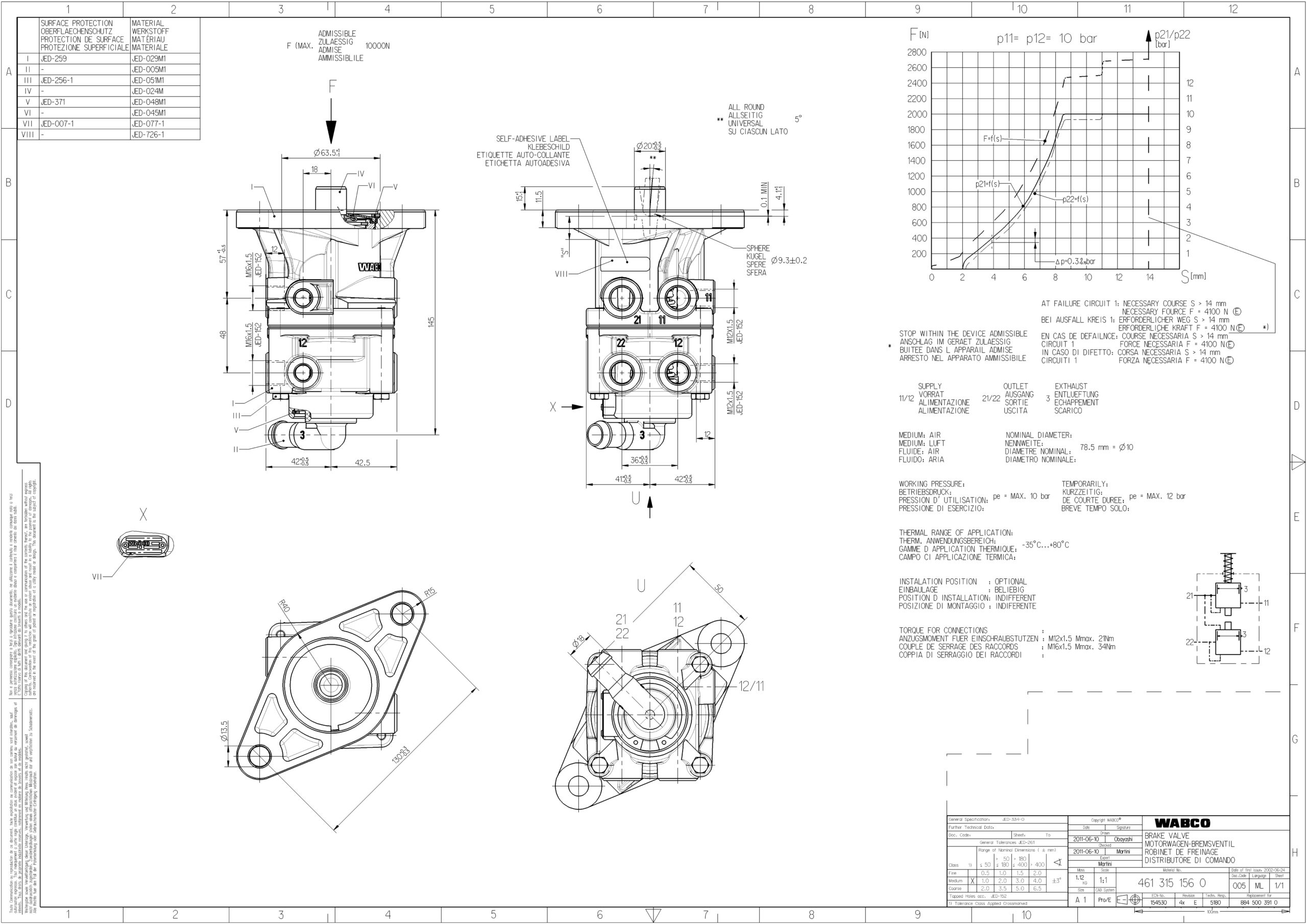 Presión ingreso: Presión egreso: Puerto 11 Ingreso: M16x1.5 + M12x1.5Puerto 12 Ingreso: M16x1.5 + M12x1.14Puerto 21 Salida: M16x1.5Puerto 22 Salida: M16x1.5Presión Max: 10BAR
