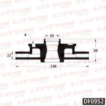 Ø Externo: 236mm Ø Eje Central: 65mm Altura: 39mm Agujeros: 4 Espesor Pista: 22mm Espesor mínimo: 19mm Descripción: