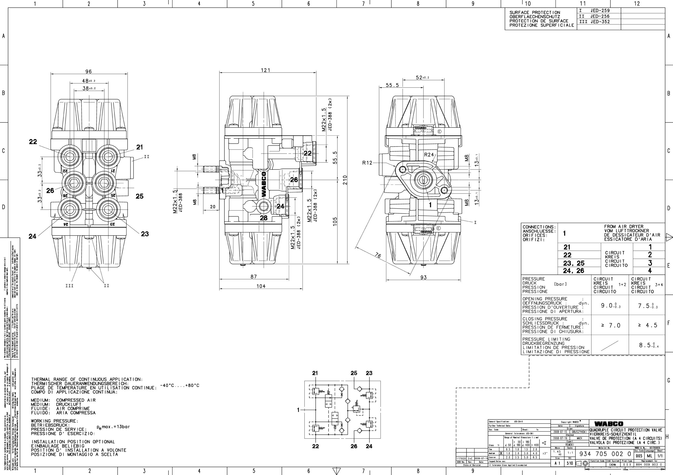 Puerto 22 Presión Apertura / Cierre: 6.5BAR / 4BAR