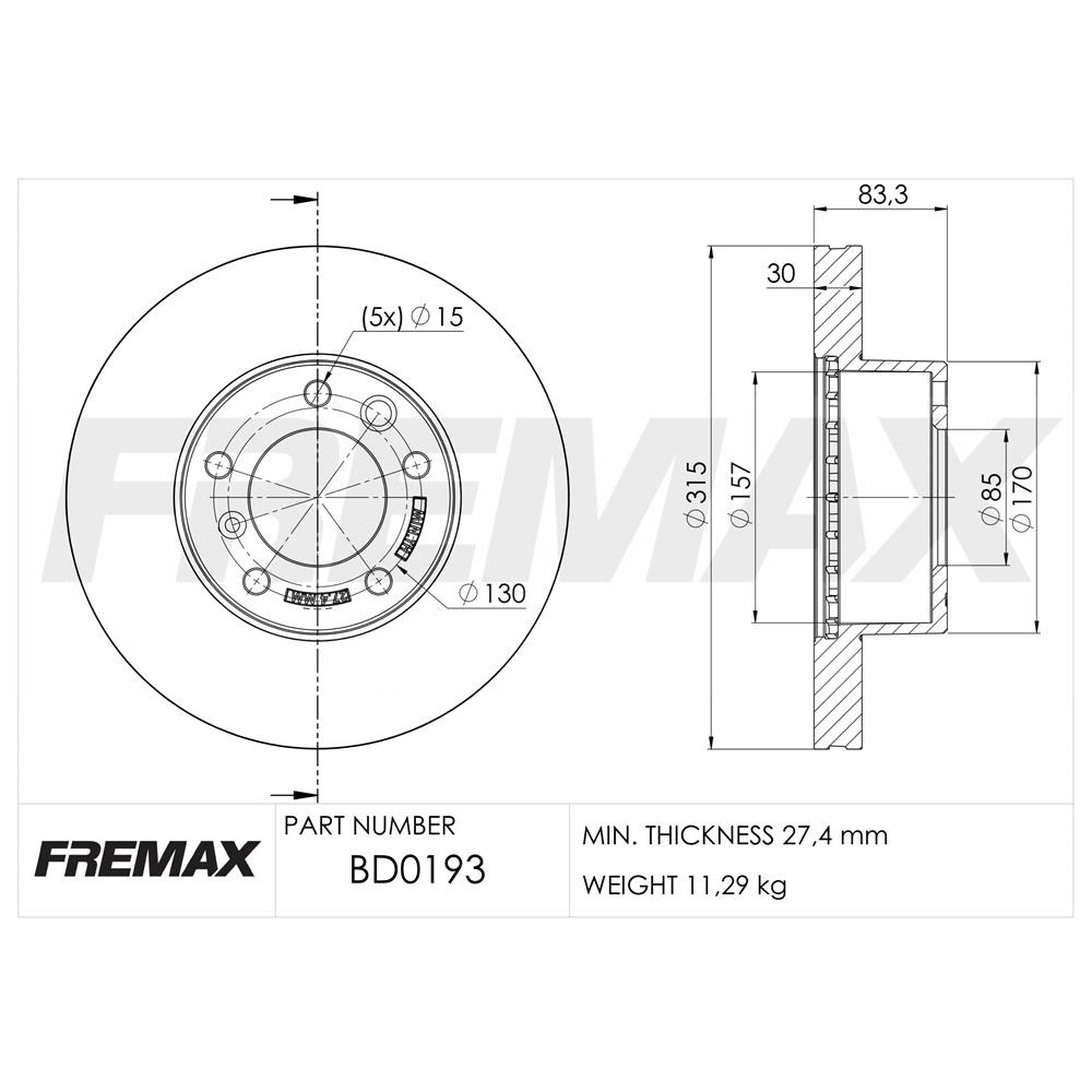 Ø Externo: 315mm Ø Eje Central: 85mm Altura: 83mm Espesor Pista: 30mm Espesor mínimo: 28mm Descripción: