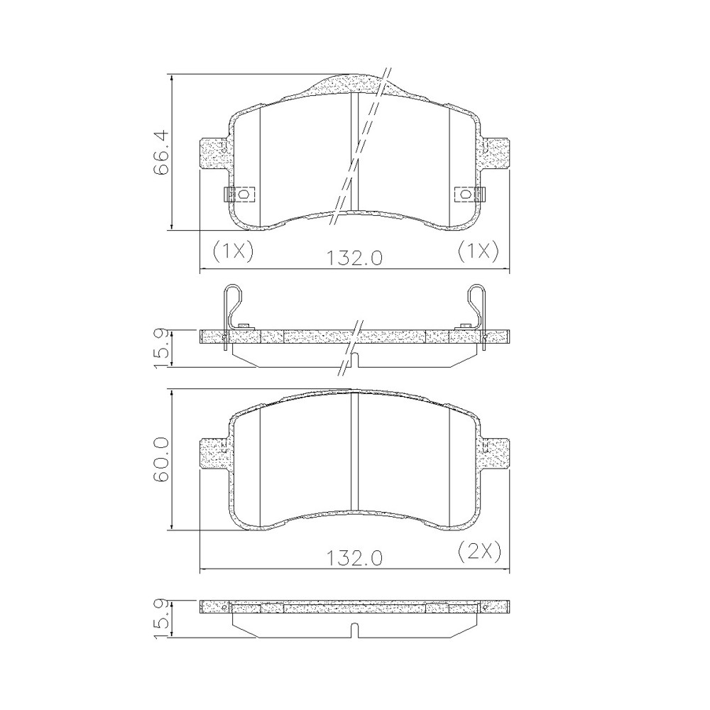 Posición: Delantera Largo: 132mm Alto: 66.4mm Espesor: 15.9mm Sensor: Si Sistema: Descripción: